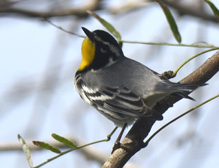 Answer. Look for the yellow. The top left bird is a yellow-throated warbler. Top right and bottom left are both yellow-rumped warblers; there is yellow at the bird's side patches, too. The bottom right bird is a black-and-white warbler which has no yellow marking.