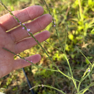 Your hand can also single out a specimen and show perspective as in the three photos below, from left: Smartweed Leafflower, Phyllanthus polygonoides; Texas Vervain, Verbena halei; and Graceful Spurge, Euphorbia hypericifolia. (Photos by Anita Westervelt)